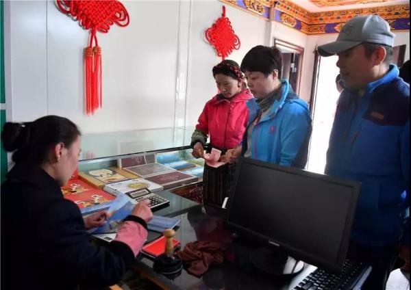 扎什倫布寺,來自香港的游客在展示中國郵政設計制作的景區(qū)門票。西藏郵政以深度融合西藏旅游文化、西藏民俗文化和郵政文化為核心,以郵政先進的網絡、技術為支撐,服務景區(qū),服務游客,融入西藏旅游發(fā)展熱潮,助推西藏旅游經濟的發(fā)展。