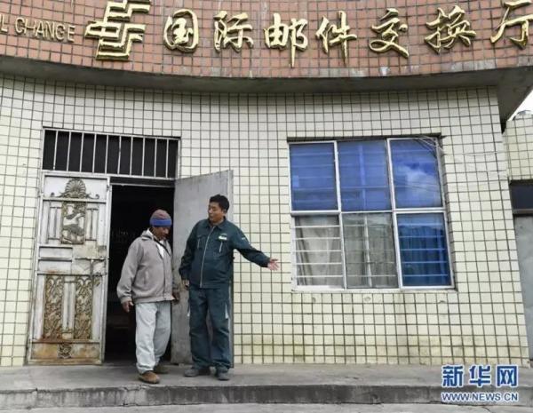 辦結(jié)國(guó)際郵件交接手續(xù)后,亞林同印方郵件交換員一起走出中國(guó)乃堆拉哨所的國(guó)際郵件交換廳。