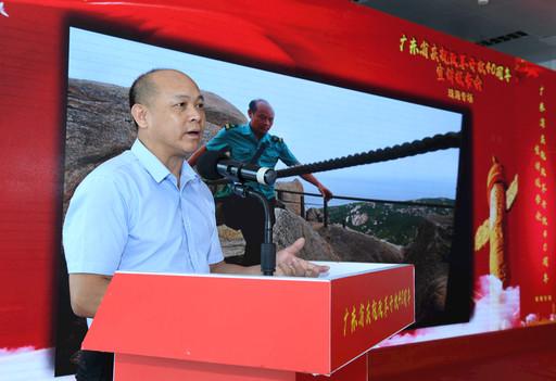 謝堅(jiān)在廣東省慶祝改革開放40周年宣講報(bào)告會(huì)珠海專場(chǎng)上發(fā)言,他身后的大屏幕播放的是他30年來堅(jiān)守海島的感人瞬間