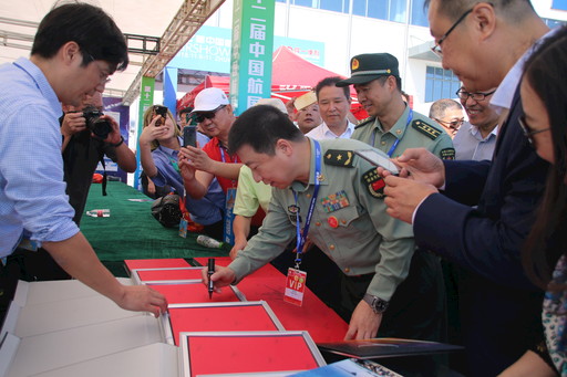11月6日,第十二屆中國國際航空航天博覽會在珠海開幕,中國十大軍工企業(yè)首次大規(guī)模參展。開幕式后,中國進入太空第一人、太空郵局局長楊利偉來到二號館前的郵政服務(wù)點,看望慰問現(xiàn)場的郵政服務(wù)人員,并在航空航天主題郵品上簽名。