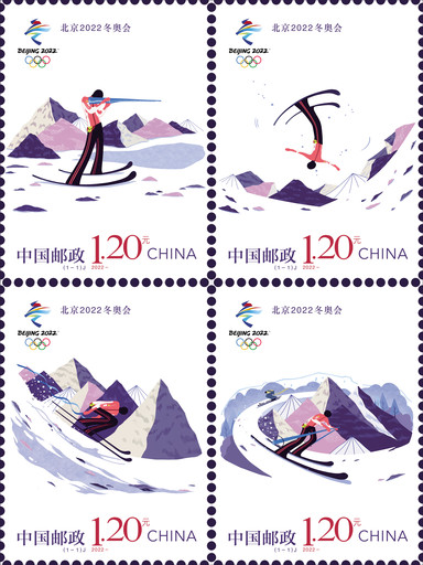 這套郵票有四枚,分別表現(xiàn)了越野滑雪、高山滑雪、冬季兩項(xiàng)和自由式滑雪等冬奧會(huì)雪上運(yùn)動(dòng)項(xiàng)目。對(duì)于大多數(shù)人來(lái)說(shuō),對(duì)雪上運(yùn)動(dòng)的了解停留在電視上,對(duì)專業(yè)級(jí)比賽知之甚少。作為設(shè)計(jì)師,我們必須熟悉這些內(nèi)容,除了郵票編輯提供的參考圖片和網(wǎng)上能搜到的資料,還要觀看每個(gè)項(xiàng)目的實(shí)景錄像,了解比賽的基本規(guī)則和內(nèi)容,在腦海中形成初步、直觀的印象,這樣才能把運(yùn)動(dòng)的獨(dú)特美感表達(dá)出來(lái)。簡(jiǎn)單地說(shuō),設(shè)計(jì)好像投入和產(chǎn)出,首先吸收消化,然后產(chǎn)出,如果沒(méi)有好的吸收過(guò)程,那么很難有好的產(chǎn)出效果。