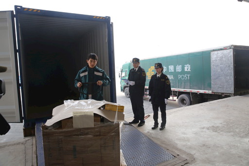 重慶郵政在海關(guān)監(jiān)管下取出進(jìn)口測(cè)試郵件。