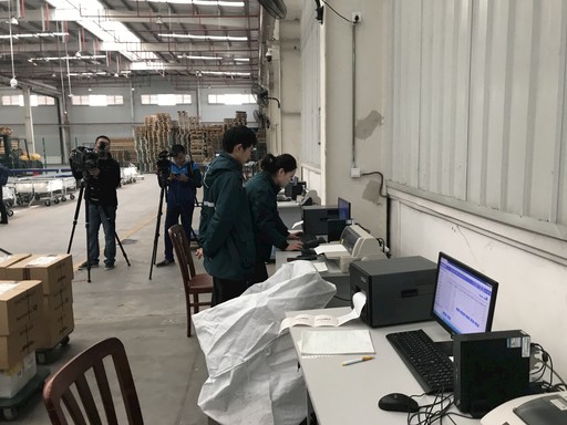在海關(guān)工作人員及眾多媒體的見證下,運(yùn)郵集裝箱開箱。