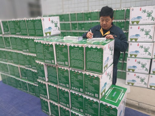 春節(jié)將至,各大電商平臺和相關(guān)企業(yè)紛紛推出了“年貨節(jié)”促銷活動。陜西省西安市郵政寄遞事業(yè)部一方面緊抓群眾節(jié)日寄遞需求,做好網(wǎng)點服務(wù)工作;另一方面,上門為客戶提供打包、貼單、運輸?shù)取耙粭l龍”服務(wù),做好節(jié)日市場開發(fā)。圖為西安市寄遞事業(yè)部工作人員在某企業(yè)收寄羊肉郵件?! 鯊堁╃?nbsp; 李青芳 攝影報道