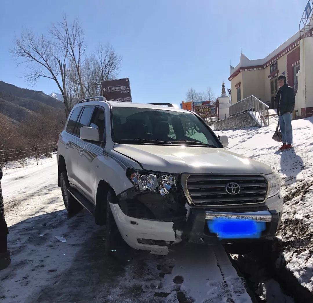 無奈之下我們改為第二天早上出發(fā),結(jié)果出發(fā)不久我們就體驗(yàn)了傳說中的蜀道之難。從康定市到甘孜縣全程300多公里,開車卻需要8個(gè)小時(shí),到處都是盤山路和冰面路段,中午11點(diǎn)53分,我乘坐的車輛突然打滑,追尾前面的轎車,一個(gè)輪胎沖進(jìn)了路邊的排水渠。