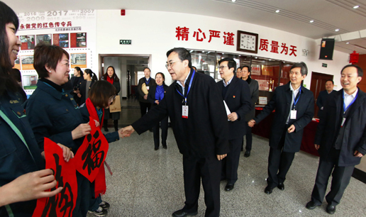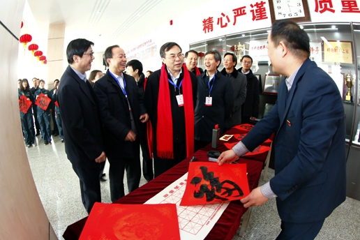 劉愛力觀看北京機(jī)要通信局員工書寫“?!弊?,為大家送上新春祝福