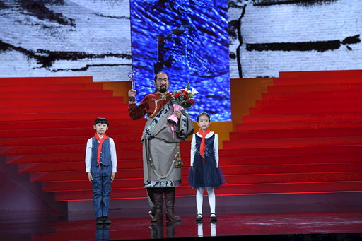 其美多吉舉起“2018年度感動(dòng)中國(guó)人物”獎(jiǎng)杯。記者 朱正義 攝