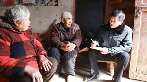 今年1月,殷勇到泗洪縣歸仁鎮(zhèn)村莊走訪調(diào)研獨(dú)生子女家庭養(yǎng)老問(wèn)題。張成 攝