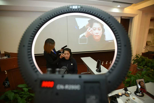 在西城區(qū)分公司舉辦的“畫(huà)出上會(huì)服務(wù)的最美風(fēng)景”妝容培訓(xùn)課上,20余名兩會(huì)上會(huì)服務(wù)的女員工正在聚精會(huì)神地練習(xí)著職業(yè)妝化妝手法,來(lái)自國(guó)際化妝大賽的評(píng)委老師簡(jiǎn)練而專業(yè)地為女員工們講解著化妝技巧。課程結(jié)束后,員工們均表示受益匪淺,通過(guò)學(xué)習(xí)提高了自己的化妝水平,可以把自己最佳的狀態(tài)呈現(xiàn)在用戶面前,以示禮貌和尊重。
