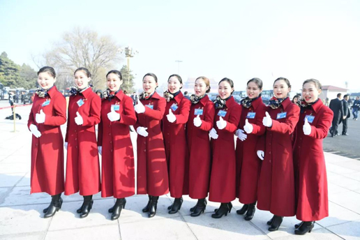 她們今天每個人都不約而同地選擇了紅色上衣,和人民大會堂、天安門廣場上的紅旗相互映襯,紅色是今天的主題,這紅是不斷涌動的紅,這紅是希望的紅。