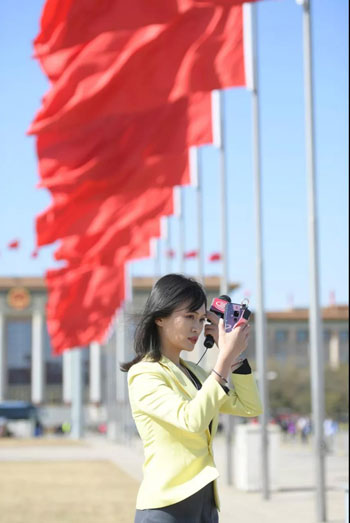 一說起添彩,還有今天報道會議開幕的女主持人、女記者,站在天安門廣場上,口播新聞,一遍一遍,只為了以最佳的姿態(tài)、最好的面貌出現(xiàn)在觀眾面前。