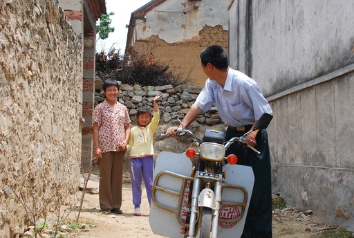 徐西國(guó)1990年參加郵電工作,2004年加入中國(guó)共產(chǎn)黨。他所在的泰安市下港鄉(xiāng),面積155平方公里,下轄34個(gè)行政村、182個(gè)自然村,境內(nèi)擁有大小山峰200余座,全鄉(xiāng)1萬多戶、4萬多村民,分布在大山深處的溝壑之中。在郵車還不能直達(dá)下港的那10年間,他負(fù)責(zé)外出接郵車并將郵件帶回局里,全年365天,他要往返364次,只有大年初一這一天是他的休息日。無論是酷暑還是嚴(yán)冬,如今,47歲的他已經(jīng)在平凡的鄉(xiāng)郵路上跋涉了28個(gè)春秋,先后騎壞了3輛自行車、3輛摩托車,剛剛騎了一年多的摩托車,里程表上早已突破了五位數(shù)。