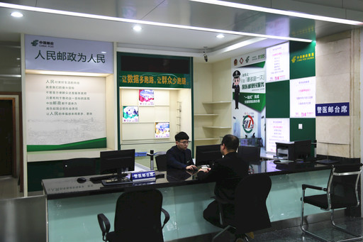 嘉興市二環(huán)北路郵政網(wǎng)點窗口人員正在熟練地為客戶辦理“警醫(yī)郵”業(yè)務。