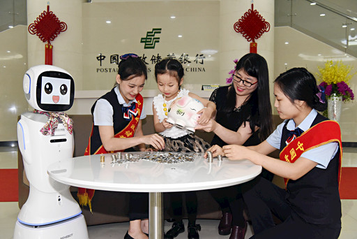 圖為帶著存錢罐的小姑娘在母親的陪同下到現(xiàn)金服務(wù)站兌換零散鈔。 □海南記者 梁磊 攝影報(bào)道