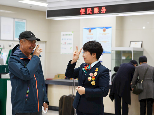 4月15日,《經(jīng)濟(jì)日?qǐng)?bào)》《工人日?qǐng)?bào)》等中央媒體來(lái)到北京東四郵局,對(duì)有著百年歷史和60多年親情服務(wù)傳統(tǒng)的品牌局所進(jìn)行采訪。東四郵局以服務(wù)起家,靠服務(wù)看家,送服務(wù)到家,一直把服務(wù)社會(huì)作為永恒主題,始終把服務(wù)人民放在第一位,形成了“用戶(hù)是親人”服務(wù)理念下的親情服務(wù)文化,被譽(yù)為京城郵政服務(wù)的“親情驛站”、首都銀街上的“親情信使”。圖為采訪當(dāng)天,全國(guó)勞動(dòng)模范、東四郵局局長(zhǎng)助理陳蘭穎為聽(tīng)力障礙用戶(hù)提供手語(yǔ)服務(wù)。 □記者 李旭昌 攝影報(bào)道