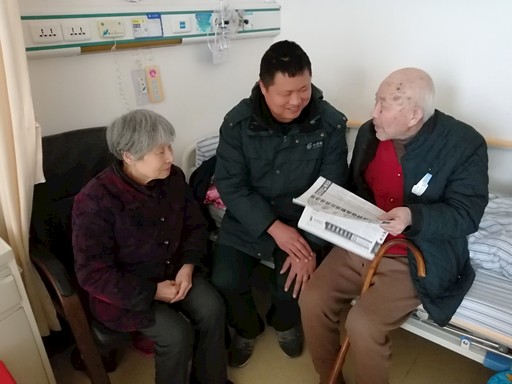 湖北省十堰市郵政分公司深入開展“比服務比質量比貢獻,爭創十星投遞員”活動,充分調動投遞員爭先創優的積極性和主動性,使投遞服務質量大幅提升。圖為三堰投遞站投遞員鄧大亮(中)為住院用戶送去當日報紙。□王龍鳳 攝影報道