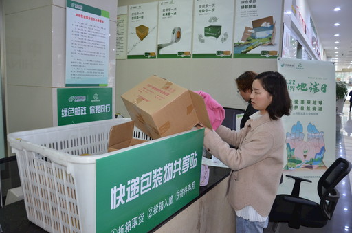 截至4月底,江蘇省東臺(tái)市郵政分公司日均回收快遞包裹箱約85個(gè)。4月22日,在第50個(gè)世界地球日,東臺(tái)市分公司因地制宜在32個(gè)郵政網(wǎng)點(diǎn)設(shè)置快遞包裝物共享站,啟動(dòng)快遞包裝物循環(huán)利用工作,旨在推動(dòng)綠色郵政建設(shè),切實(shí)踐行綠色發(fā)展理念。圖為在東亭路支局領(lǐng)取包裹的客戶將包裝箱投入共享站。 □單國勝 攝影報(bào)道