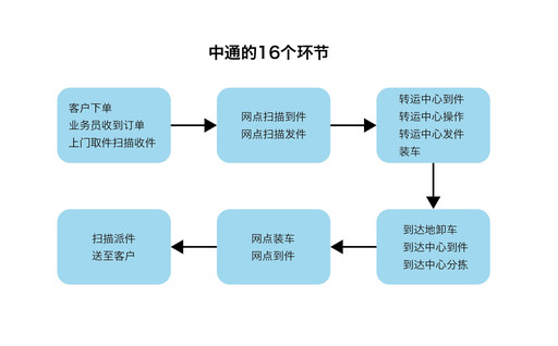 圖表1:中通的16個(gè)環(huán)節(jié)