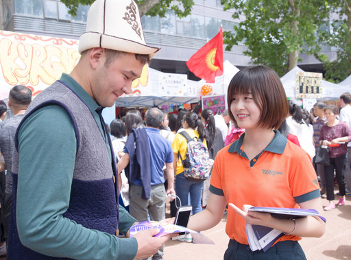 5月19日,在北京語言大學(xué)校園內(nèi)的梧桐大道上,來自90多個(gè)國家和地區(qū)的近千名北語青年學(xué)子,與社會(huì)各界人士歡聚第十六屆北京語言大學(xué)世界文化節(jié)。北京市海淀區(qū)郵政寄遞事業(yè)部組織工作人員走進(jìn)北語世界文化節(jié),宣傳EMS國際業(yè)務(wù),展示了EMS的品牌形象。 □北京記者 吳玉蘭 通訊員 隋源 攝影報(bào)道