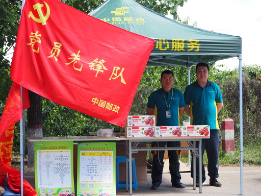 5月中旬,西安市郵政分公司組成黨員先鋒隊,幫助村民采摘、封裝、寄遞櫻桃。此外,為讓村民獲得更多實惠,西安市分公司在“郵樂網(wǎng)”“極速鮮”等線上銷售平臺為村民宣傳,讓陜西的櫻桃多條渠道走出去。“郵政來了,黨旗映紅了整個‘櫻桃谷’。”村民們這樣說道。 □袁淑美 攝影報道