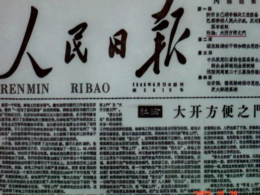 1958年6月2日《人民日?qǐng)?bào)》在頭版發(fā)表社論《大開方便之門》
