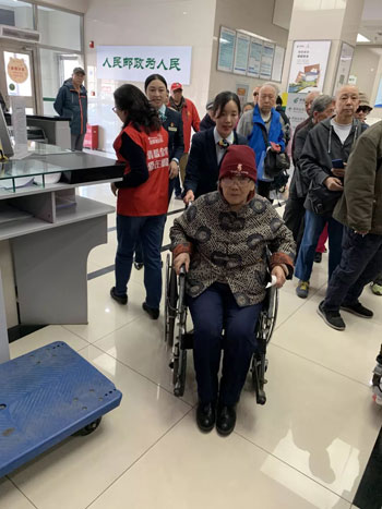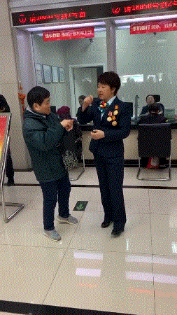 主動(dòng)幫助行動(dòng)不方便老人辦理業(yè)務(wù)的東四郵局員工