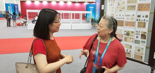 此次世界郵展評(píng)審委員會(huì)主任焦曉光(右)在展會(huì)現(xiàn)場(chǎng)接受《中國(guó)郵政報(bào)》特派記者王楚蕓采訪。