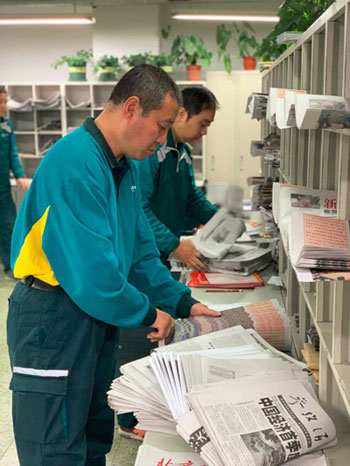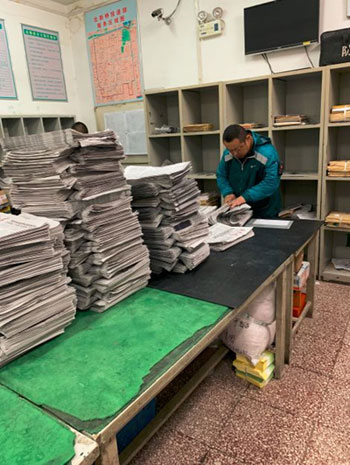 東四郵局北新橋投遞部已經(jīng)分好的報(bào)紙(央廣記者 馮會(huì)玲攝)