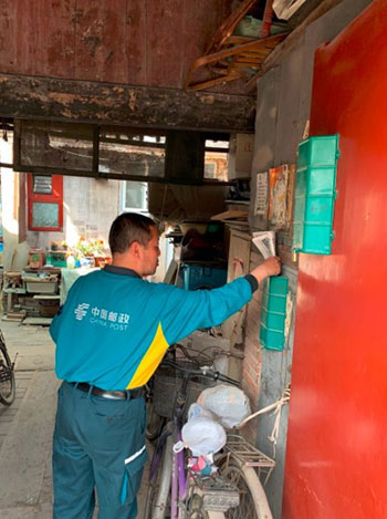 在胡同里送報(bào)紙和包裹的小梅(央廣記者 馮會(huì)玲攝)