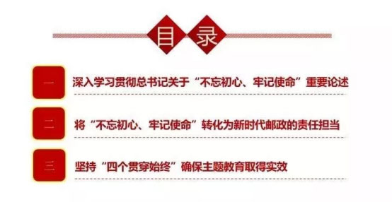 不忘初心再出發(fā),牢記使命勇?lián)?dāng)。在舉國上下喜迎新中國成立70周年之際,集團(tuán)公司黨組按照中央部署,以上率下,團(tuán)結(jié)帶領(lǐng)各級(jí)黨組織和廣大黨員干部,樹牢“四個(gè)意識(shí)”、堅(jiān)定“四個(gè)自信”、做到“兩個(gè)維護(hù)”,切實(shí)增強(qiáng)政治自覺、思想自覺、行動(dòng)自覺,有力有序有效推進(jìn)主題教育深入開展,將初心使命轉(zhuǎn)化為新時(shí)代郵政的責(zé)任擔(dān)當(dāng),做到學(xué)思用貫通、知信行統(tǒng)一,確保主題教育取得扎扎實(shí)實(shí)的成效,以主題教育的成效推動(dòng)郵政改革發(fā)展、創(chuàng)新轉(zhuǎn)型取得新突破、邁上新臺(tái)階。
