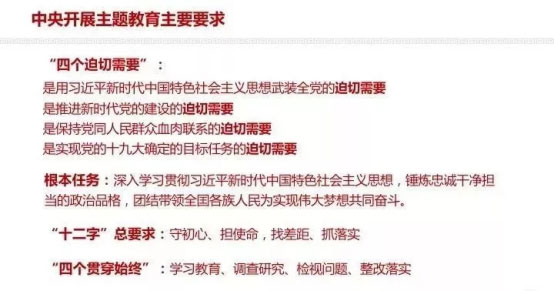 開展這次主題教育,就是要堅(jiān)持思想建黨、理論強(qiáng)黨,堅(jiān)持學(xué)思用貫通、知信行統(tǒng)一,推動(dòng)廣大黨員干部不斷增強(qiáng)“四個(gè)意識(shí)”、堅(jiān)定“四個(gè)自信”,堅(jiān)決做到“兩個(gè)維護(hù)”,最關(guān)鍵的是堅(jiān)決維護(hù)習(xí)近平總書記黨中央的核心、全黨的核心地位,做到“三個(gè)體現(xiàn)在”:體現(xiàn)在與黨中央保持高度一致上,體現(xiàn)在嚴(yán)守黨的政治紀(jì)律和政治規(guī)矩上,體現(xiàn)在堅(jiān)決貫徹落實(shí)黨中央重大決策部署上。