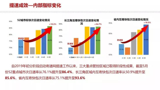 劉愛力還介紹了集團(tuán)公司自2019年初分階段啟動(dòng)寄遞網(wǎng)提速工作以來,三大重點(diǎn)管控區(qū)域取得的階段性成果,寄遞業(yè)務(wù)時(shí)限質(zhì)量有了大幅提升。