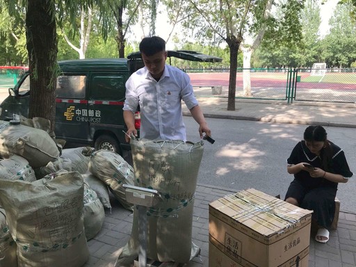 韓超(左)正在收寄校園包裹。