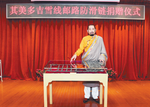 7月9日,其美多吉雪線郵路防滑鏈捐贈(zèng)儀式在中國郵政郵票博物館舉行。“時(shí)代楷模”其美多吉介紹說,防滑鏈?zhǔn)潜U涎┚€郵路郵車駕駛員安全的主要工具,是翻雀兒山、過冰雪路的必需品。防滑鏈見證了其美多吉三十年如一日用青春和生命為民服務(wù)、用鮮血和汗水忠誠履職的奮斗歷程,見證了郵政人服務(wù)政治穩(wěn)定、民族團(tuán)結(jié)、經(jīng)濟(jì)發(fā)展、社會(huì)進(jìn)步、人民幸福的職責(zé)使命,見證了艱苦奮斗、勇于創(chuàng)新、不畏艱險(xiǎn)、默默奉獻(xiàn)的交通精神。其美多吉先進(jìn)事跡報(bào)告團(tuán)成員參加了捐贈(zèng)儀式。
