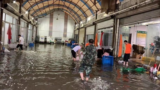 山東濟南:濟南市郵政寄遞事業(yè)部歷城區(qū)工業(yè)北路營業(yè)部受災(zāi)嚴重,員工及時轉(zhuǎn)移郵件及物資。李小樂 攝