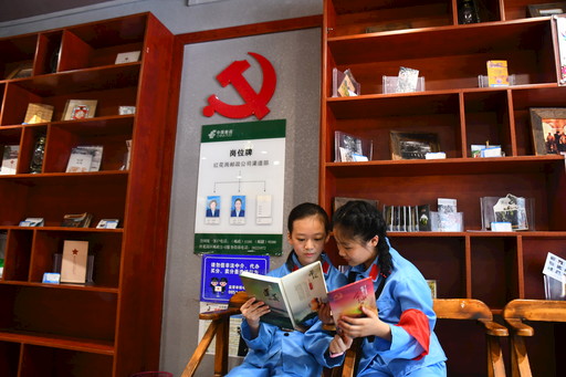 穿著紅軍裝的兒童在郵冊上了解紅色遵義。