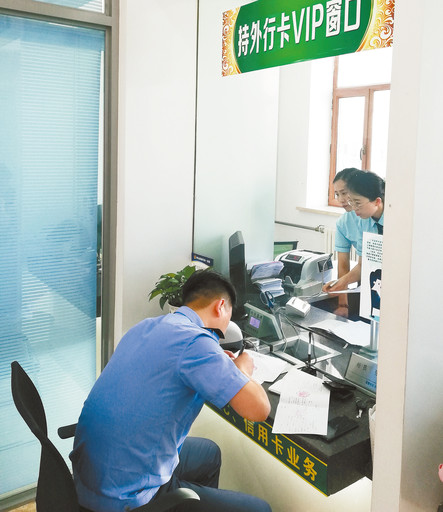 東郊營業所靠服務開拓市場,“來的都是客,服務不打折”,專門開設了“持外行卡VIP窗口”。寧國富 攝