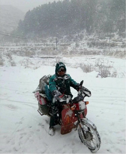 10多年前的孟山鄉(xiāng),條件十分艱苦,環(huán)境十分惡劣。那時(shí)的孟山鄉(xiāng)一帶鮮有橋梁,每次暴雨時(shí)節(jié),郭成明為了不讓用戶的郵件受到損失,每次過(guò)河前都將郵件用塑料包好,冒著大雨往返河流15次,將郵件完好無(wú)損地交到收件人手中。雖說(shuō)每次都是有驚無(wú)險(xiǎn),但長(zhǎng)途的跋涉“危險(xiǎn)”也常伴左右,記得那是2010年冬天的一個(gè)傍晚,天色漸暗,他送完最后一個(gè)郵件想趁著天還沒(méi)有全黑趕回家中,可就在出村不遠(yuǎn)的一條羊腸小道上,前方突然出現(xiàn)大片暗冰。他急踩剎車后,摩托車朝著路邊深溝沖了過(guò)去。他急忙握緊車把調(diào)轉(zhuǎn)方向,卻又撞向了路邊的山崖,重重地將他摔在了地上。這一次的經(jīng)歷造成了郭成明腿部靜脈曲張、腰椎間盤突出的傷痛,可他仍然堅(jiān)持在這條郵路上跋涉,從來(lái)沒(méi)有抱怨過(guò)。