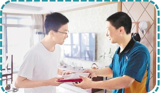 “這幾日,我早上7時(shí)就會(huì)過(guò)來(lái)準(zhǔn)備收件。暑期錄取通知書(shū)多,寄送要求高,要提前準(zhǔn)備,規(guī)劃路線?!倍A遞來(lái)兩套工作服,按照約定,我們要跟著他送件一天。