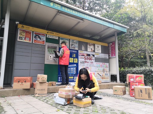 “雙11”期間,四川省自貢市郵政分公司為了解決“最后一公里”人員不足的問題,組織志愿服務隊去一線幫忙投遞。□徐鵬 攝影報道