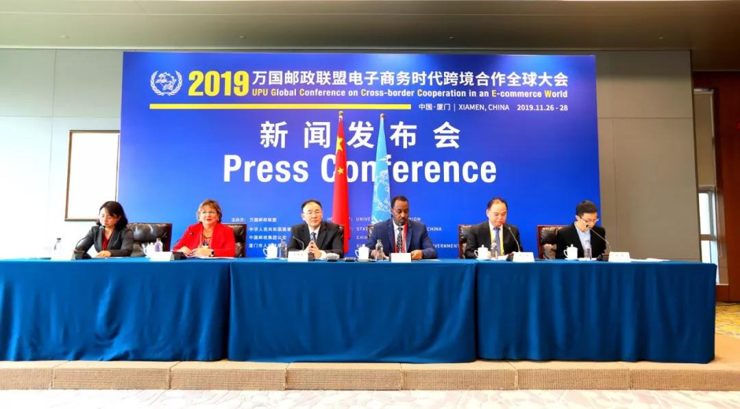 11月26日,萬國郵聯(lián)國際局總局長比沙爾·侯賽因、世界海關(guān)組織守法便利司司長安娜·伊諾霍薩、中國國家郵政局局長馬軍勝、中國郵政集團公司副總經(jīng)理張榮林出席萬國郵聯(lián)電子商務(wù)時代跨境合作全球大會新聞發(fā)布會,圍繞增進全球郵政、海關(guān)、鐵路、航空和跨境管理機構(gòu)之間的合作,發(fā)展完善全球郵政網(wǎng)絡(luò),促進郵政供應(yīng)鏈的安全和便利化,推進國際鐵路運郵,推動跨境電商和全球貿(mào)易可持續(xù)發(fā)展等主題向記者進行了介紹并回答記者提問。