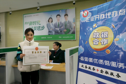 11月27日上午,某商務(wù)中心韓女士從郵儲(chǔ)銀行山東省棗莊市嶧城區(qū)支行幫辦人員手中接過營(yíng)業(yè)執(zhí)照,開心地說:“家門口的銀行也能辦營(yíng)業(yè)執(zhí)照,這個(gè)創(chuàng)新好!”