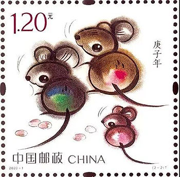 庚子鼠年生肖郵票第一圖名為“子鼠開天”,取自民間傳說“鼠咬天開”,萌動之鼠騰空躍起,咬破混沌,遂成宇宙,寓意國家取得了開天辟地、繼往開來的巨大成就;第二圖為“鼠兆豐年”,三只小鼠一副歡喜自得模樣,寓意闔家歡樂,花生圖案一派豐收景象,寓意2020年五谷豐登、闔家歡樂。畫面運(yùn)用裝飾小寫意的畫法,結(jié)合傳統(tǒng)國畫的渲染技藝,展現(xiàn)了生肖鼠的可愛萌動,預(yù)示著偉大祖國的繁榮富強(qiáng)。