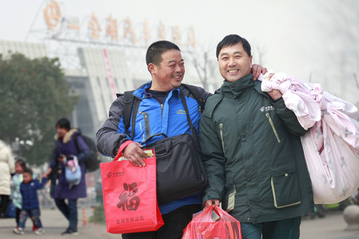 在車站、城鄉(xiāng)郵政網(wǎng)點(diǎn)等活動現(xiàn)場,金湖縣分公司志愿者在為返鄉(xiāng)務(wù)工人員提供便民服務(wù)的同時(shí),向其贈送內(nèi)含春聯(lián)、窗花、“福”字的迎春禮包,并發(fā)放《法律法規(guī)知識手冊》《勞動合同知識普及手冊》等相關(guān)政策法規(guī)資料以及《郵政便民服務(wù)手冊》《預(yù)防電信詐騙手冊》等便民資料。圖為金湖縣分公司投遞員王波接呂良鎮(zhèn)返鄉(xiāng)務(wù)工人員凌久權(quán)回家。□吉爾云 攝影報(bào)道