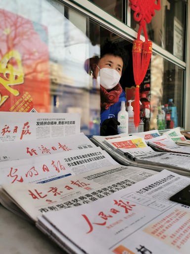 9:30,一位老大姐過(guò)來(lái)買《北京日?qǐng)?bào)》和《參考消息》,還有人來(lái)打聽晚報(bào)和疫情情況;9:40,一個(gè)快遞小哥兒習(xí)慣地把車停在報(bào)刊亭旁邊,掃碼4塊錢買了《北京日?qǐng)?bào)》《參考消息》《環(huán)球時(shí)報(bào)》,直說(shuō)好幾天沒看報(bào)了。從除夕到初七,這個(gè)報(bào)刊亭銷售報(bào)刊1599元,《人民日?qǐng)?bào)》《北京日?qǐng)?bào)》《參考消息》《北京晚報(bào)》累計(jì)銷售近500份。