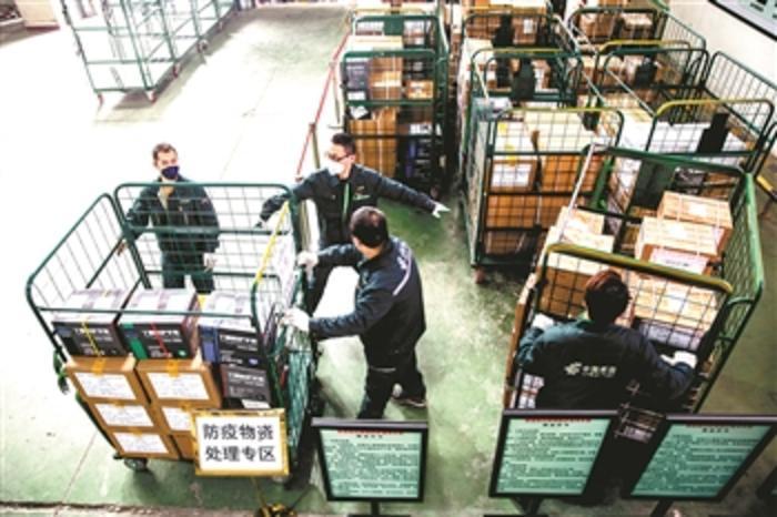 北京郵區(qū)中心局作為郵件集散地和分揀處理運(yùn)輸中心,為了讓捐贈(zèng)物資快速寄達(dá)武漢,對(duì)防疫物資采取專人接收、優(yōu)先處理的方案,并開(kāi)通綠色通道,保障捐贈(zèng)物資全程單獨(dú)處理,內(nèi)部處理環(huán)節(jié)提速兩個(gè)多小時(shí)。