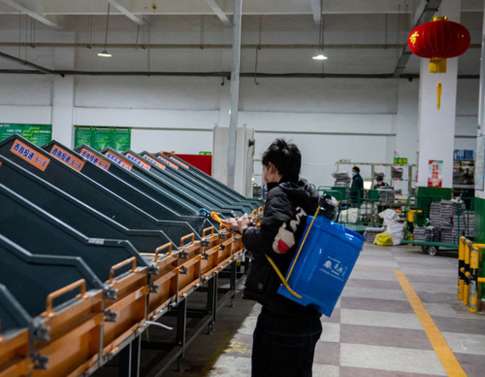 1月31日,在拉薩郵區(qū)中心局郵件處理中心,工作人員為郵件分揀機(jī)器消毒。 新華社記者 侯捷 攝