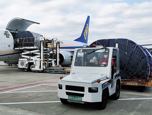 1月27日,郵航首班包機承運的防疫物資在廣州進行裝機作業(yè)。