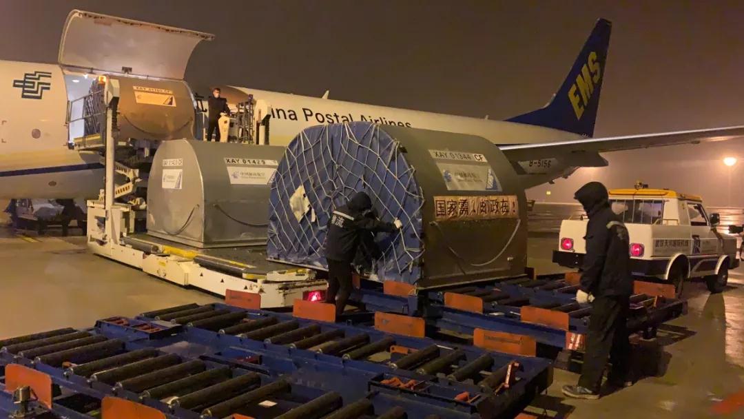 2月27日17時(shí)32分,中國(guó)郵政航空公司CF9121航班承載著總重1.618噸的16臺(tái)德國(guó)產(chǎn)ECMO設(shè)備及配套耗材從北京首都機(jī)場(chǎng)起飛,于19時(shí)16分在小雨中飛抵武漢天河機(jī)場(chǎng),郵航武漢辦事處和天河機(jī)場(chǎng)地面保障部門第一時(shí)間展開(kāi)卸機(jī)作業(yè),完成這批救命設(shè)備的空陸交接。