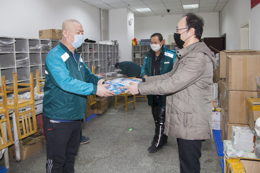 2月19日,馬敏杰得知一線員工防護(hù)用品緊缺的情況后,四處聯(lián)系,最終購進(jìn)100個(gè)口罩,贈送給投遞員。“一定要做好防護(hù)措施?!痹谕哆f班,馬敏杰只留下一句話便轉(zhuǎn)身離開了。